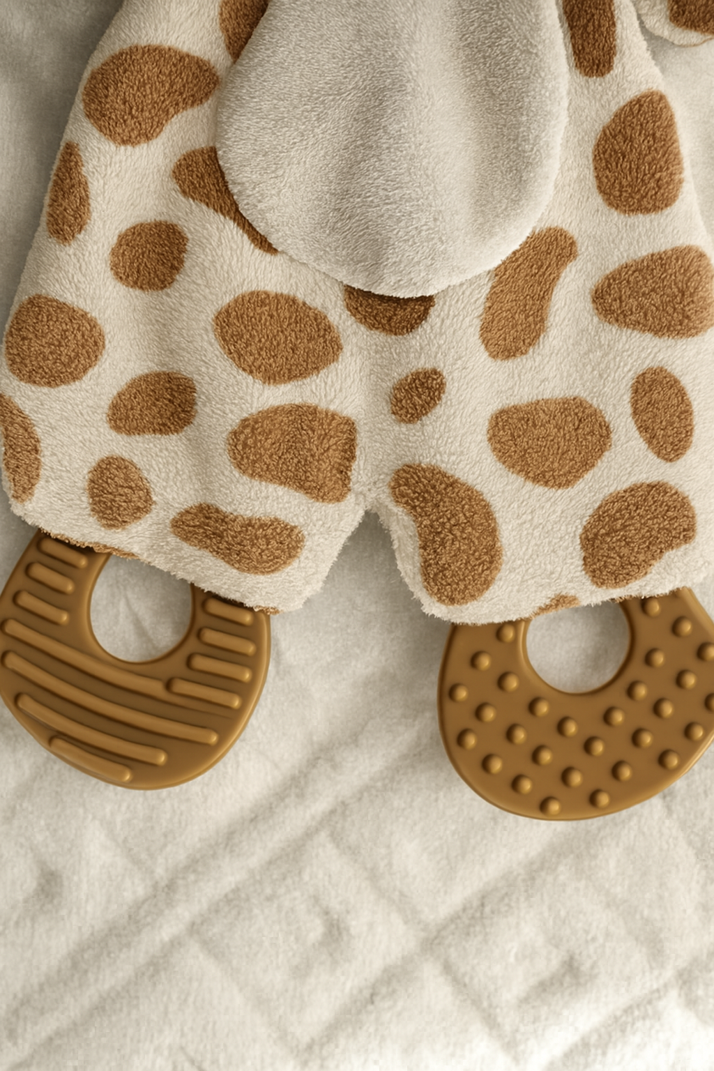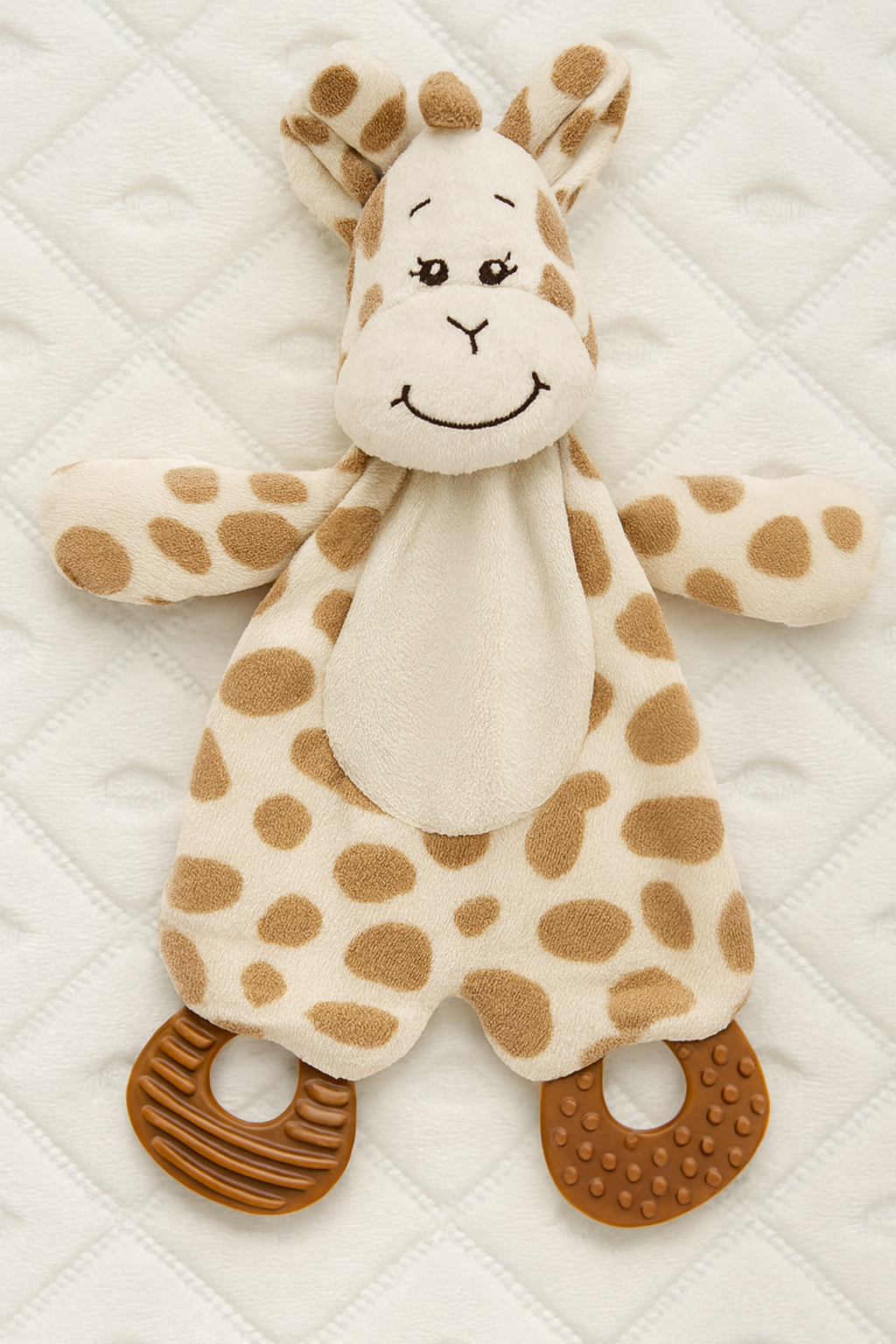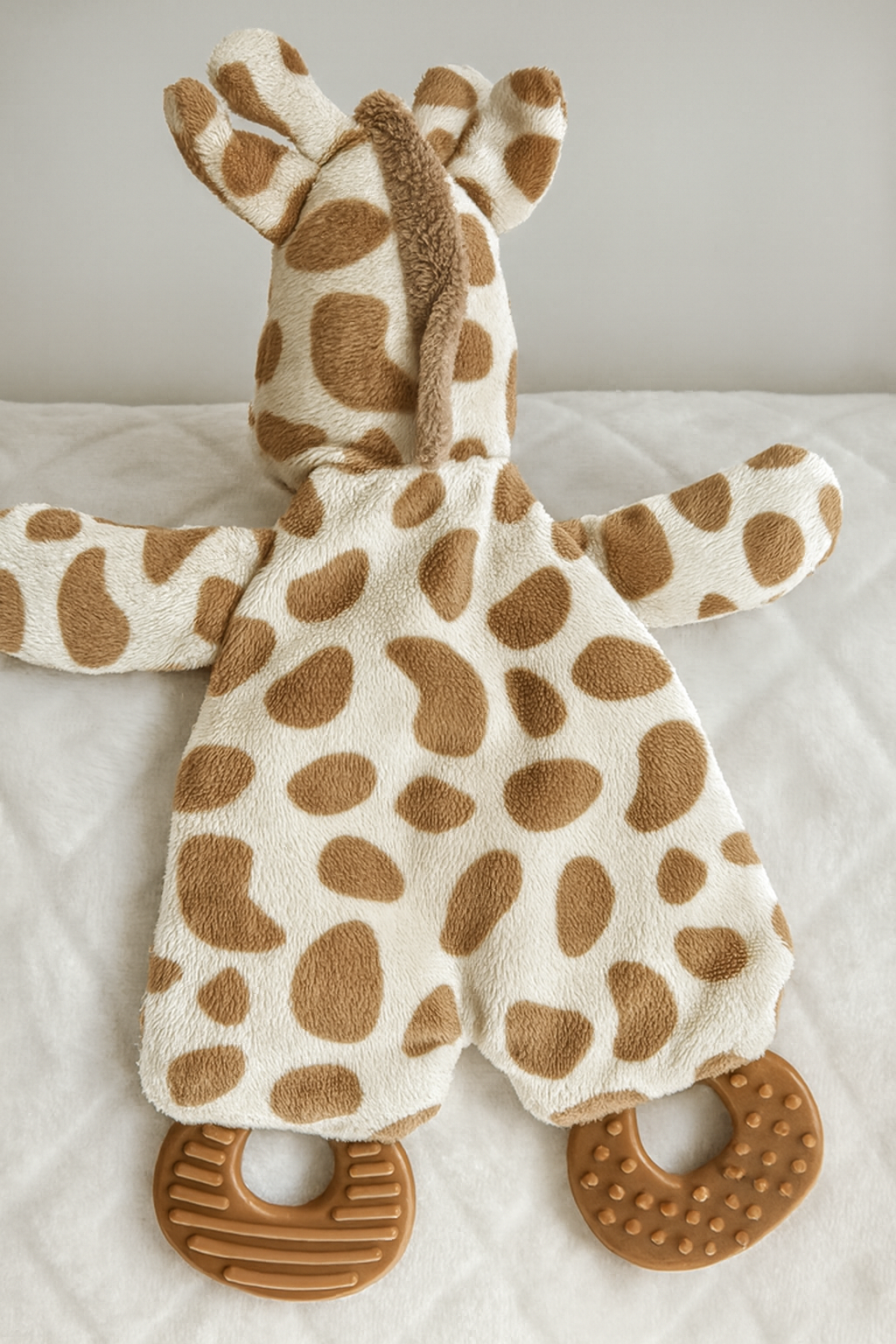 Cette adorable girafe en tissu doux crème à taches marron est bien plus qu’un simple doudou : elle combine tendresse, éveil sensoriel et praticité pour les tout-petits. D’une hauteur de 26 cm et largeur de 20 cm, elle est idéale pour les petites mains.