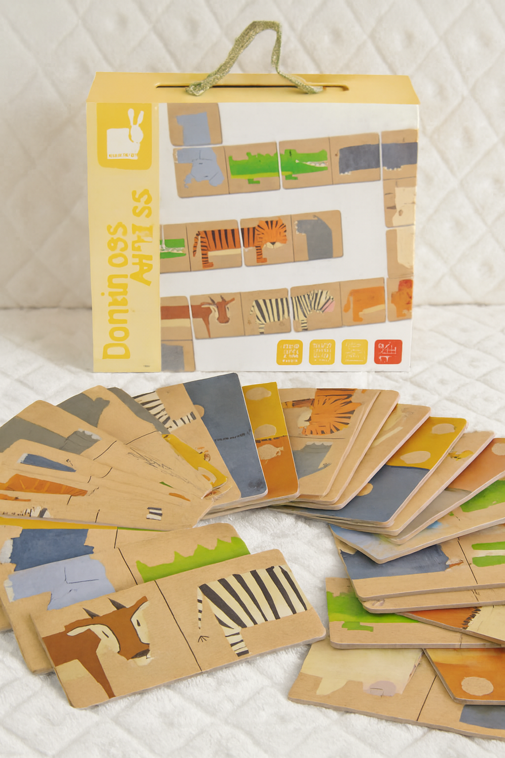 Offrez à votre enfant un moment de jeu ludique et éducatif avec ce jeu de dominos Janod, soigneusement conservé et complet, en très bon état.