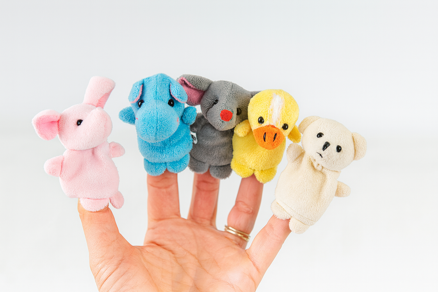 Chaque marionnette mesure environ 7 cm et se glisse facilement sur les doigts des petits comme des grands, pour inventer des histoires, chanter des comptines ou animer des lectures.