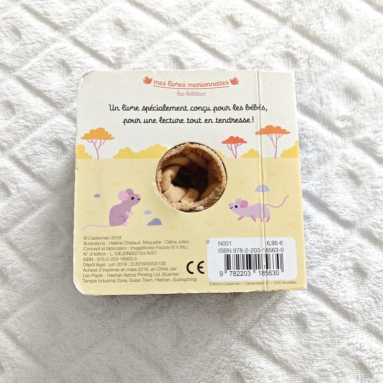 • Format : Livre cartonné avec marionnette en tissu intégrée