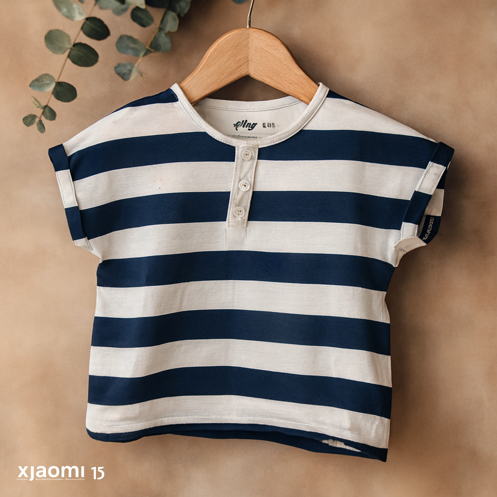 - Motif : rayures horizontales bleu marine et blanc