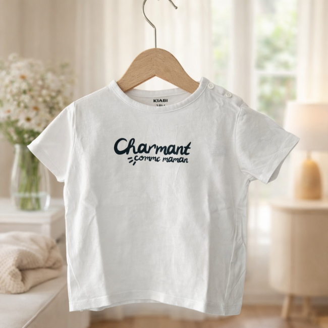 🌿Tee-shirt blanc KIABI – “Charmant comme maman” – 18 mois - Seconde main