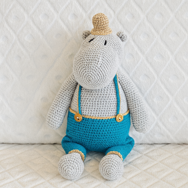 Doudou Hippopotame en coton – Bleu & Marron