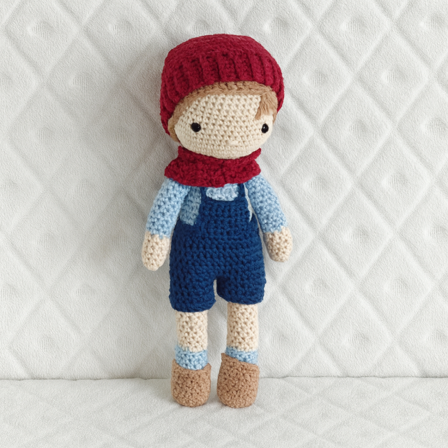 Poupée crochetée garçon et ses accessoires