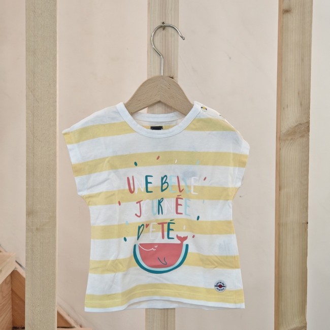 T-shirt bébé 12 mois – rayé jaune et blanc – motif baleine – Terre de Marins - seconde main